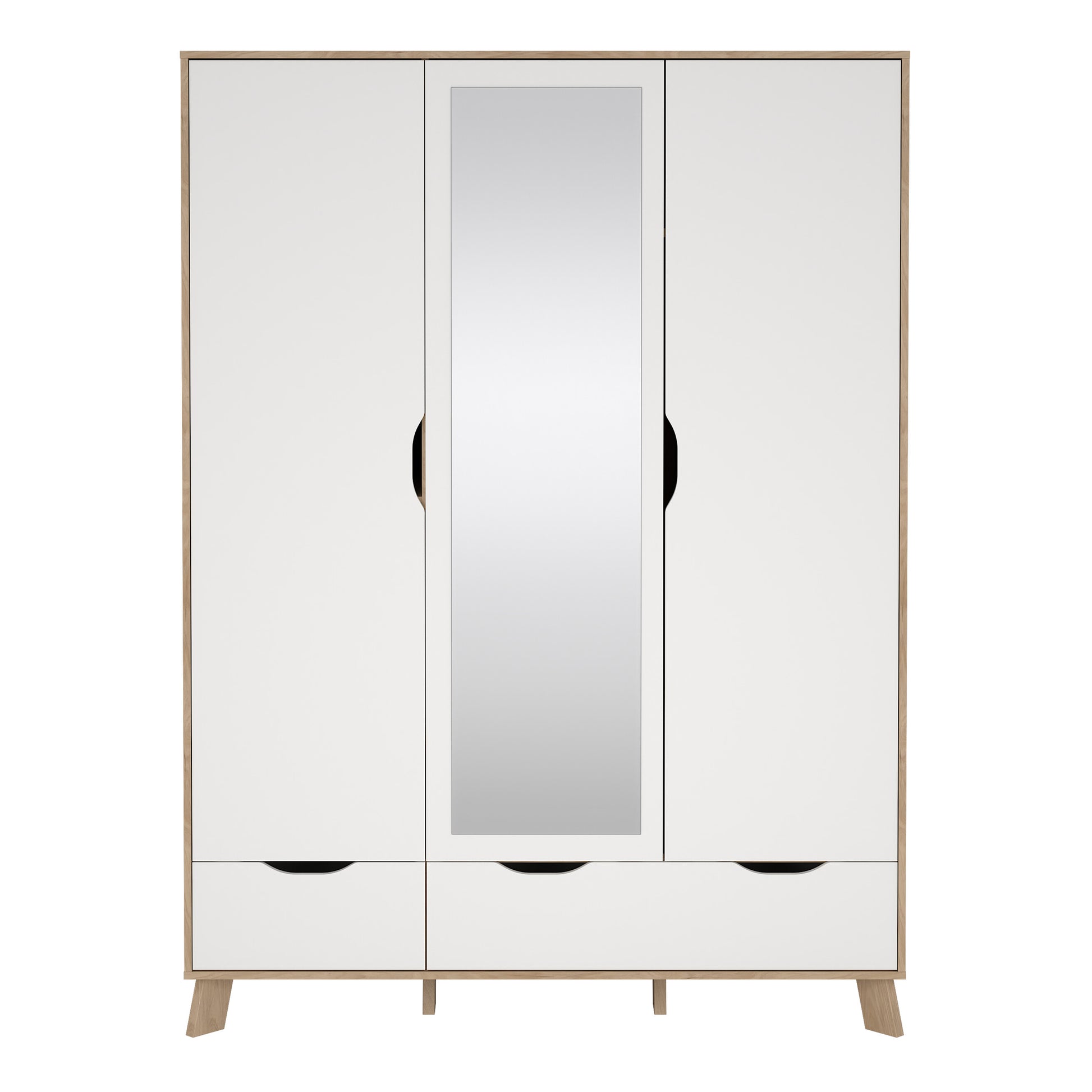 Ikast Wardrobe 3 Doors and 2 Drawers with Mirror in Jackson Hickory and White