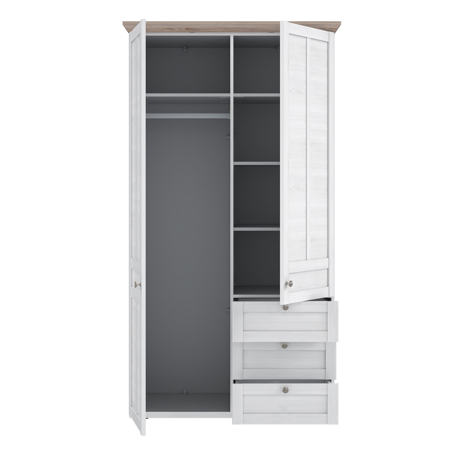 Illoppa 2 Door Wardrobe in Snowy Oak/Oak Nelson