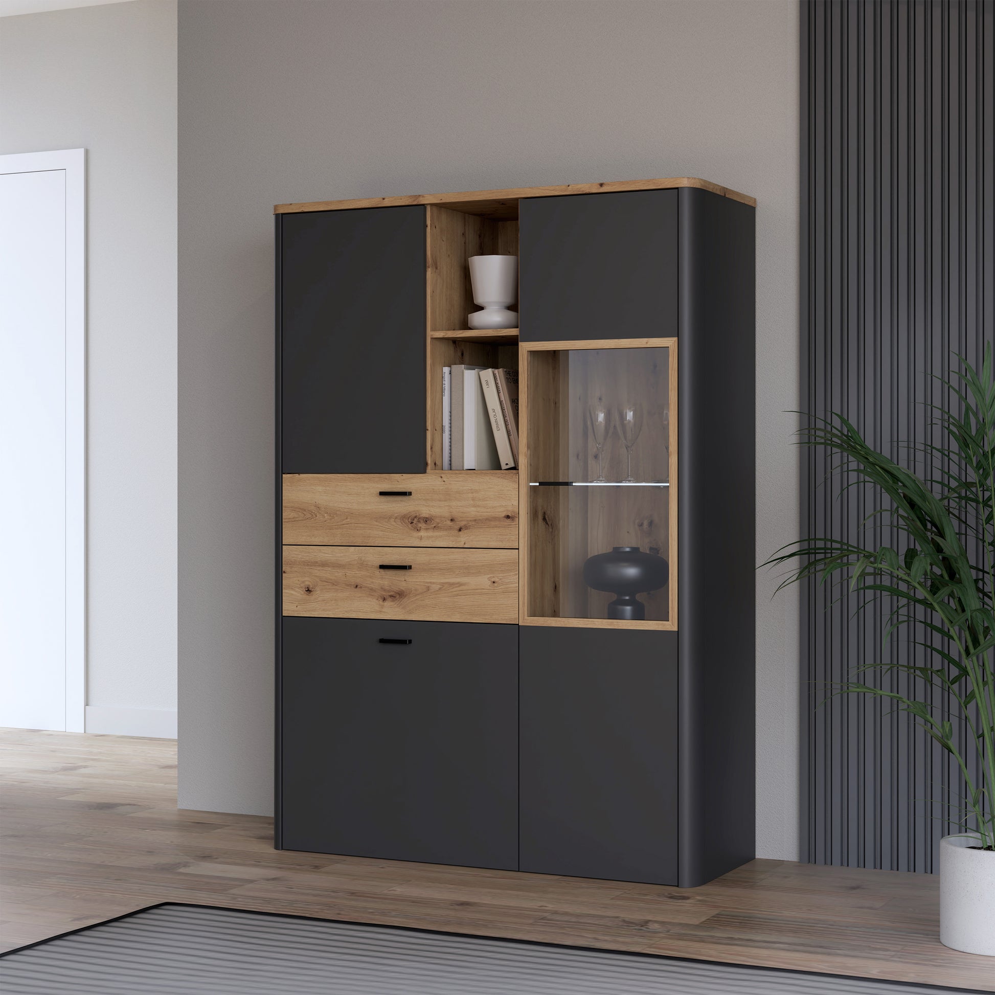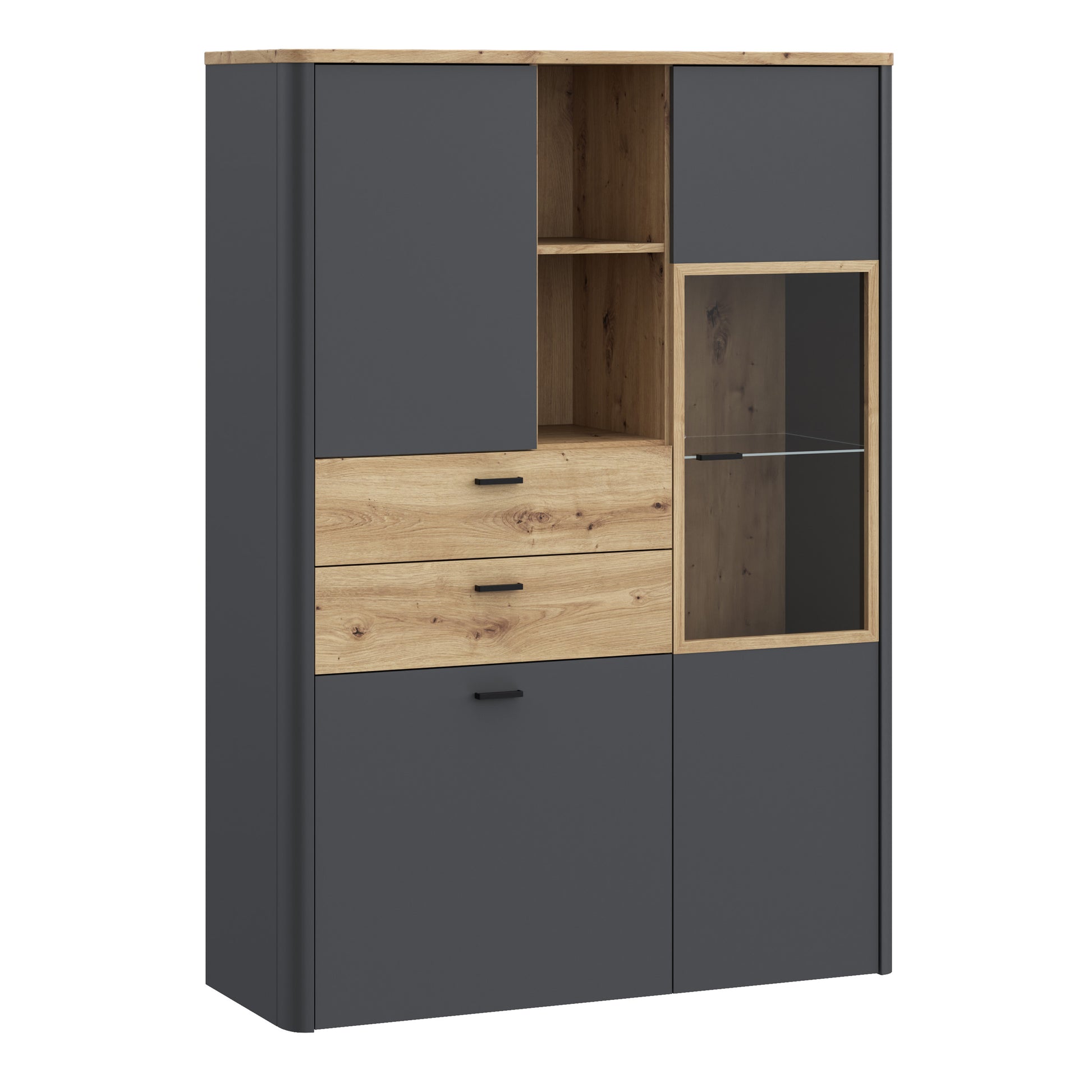 Klara Display Cabinet with 2 Door 2 Drawers and 1 Glass Door in Grey and Oak