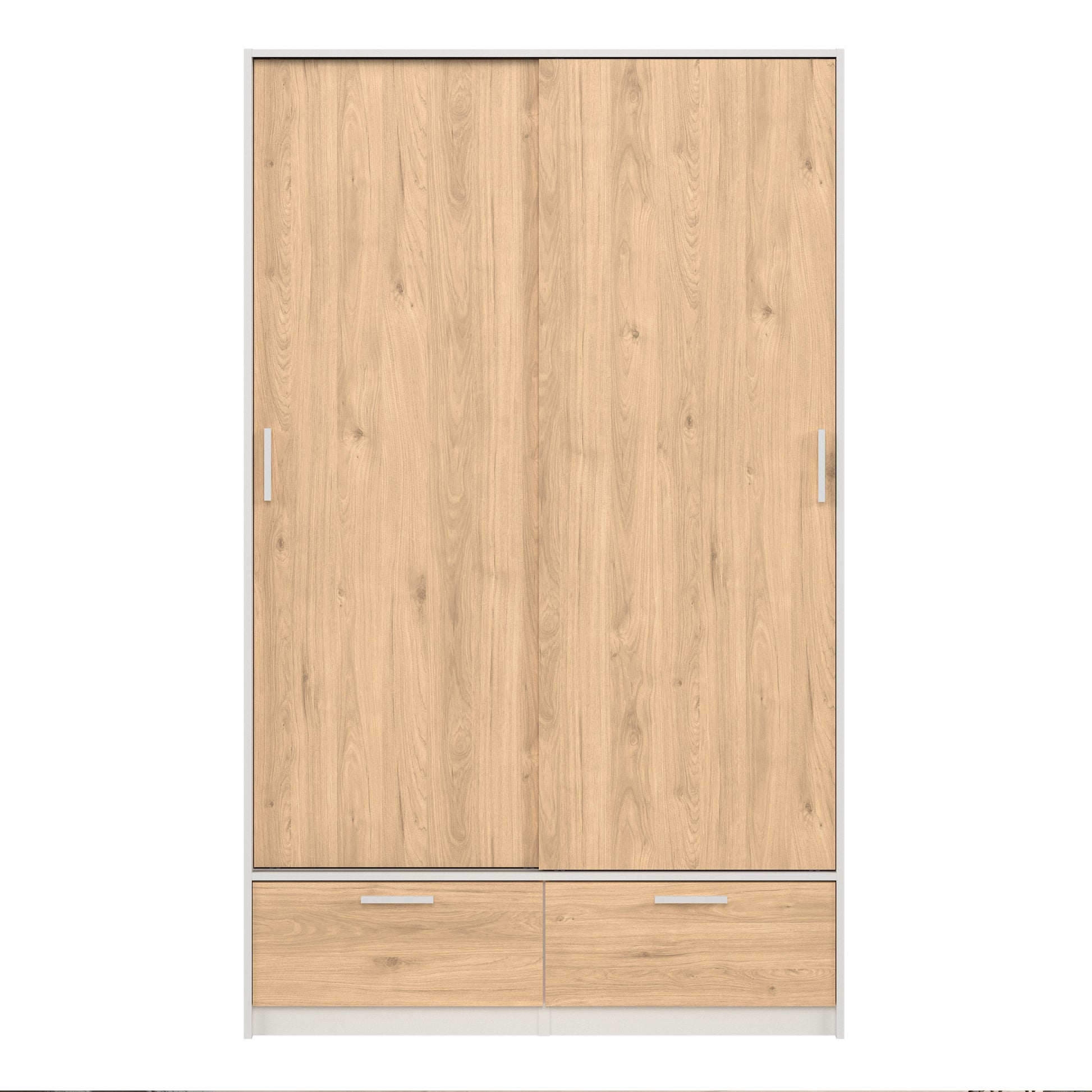 Line Wardrobe with 2 Doors 2 Drawers in White and Jackson Hickory Oak