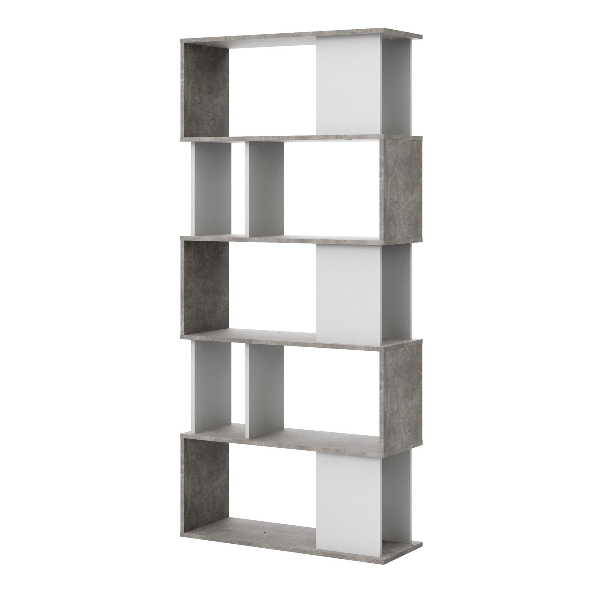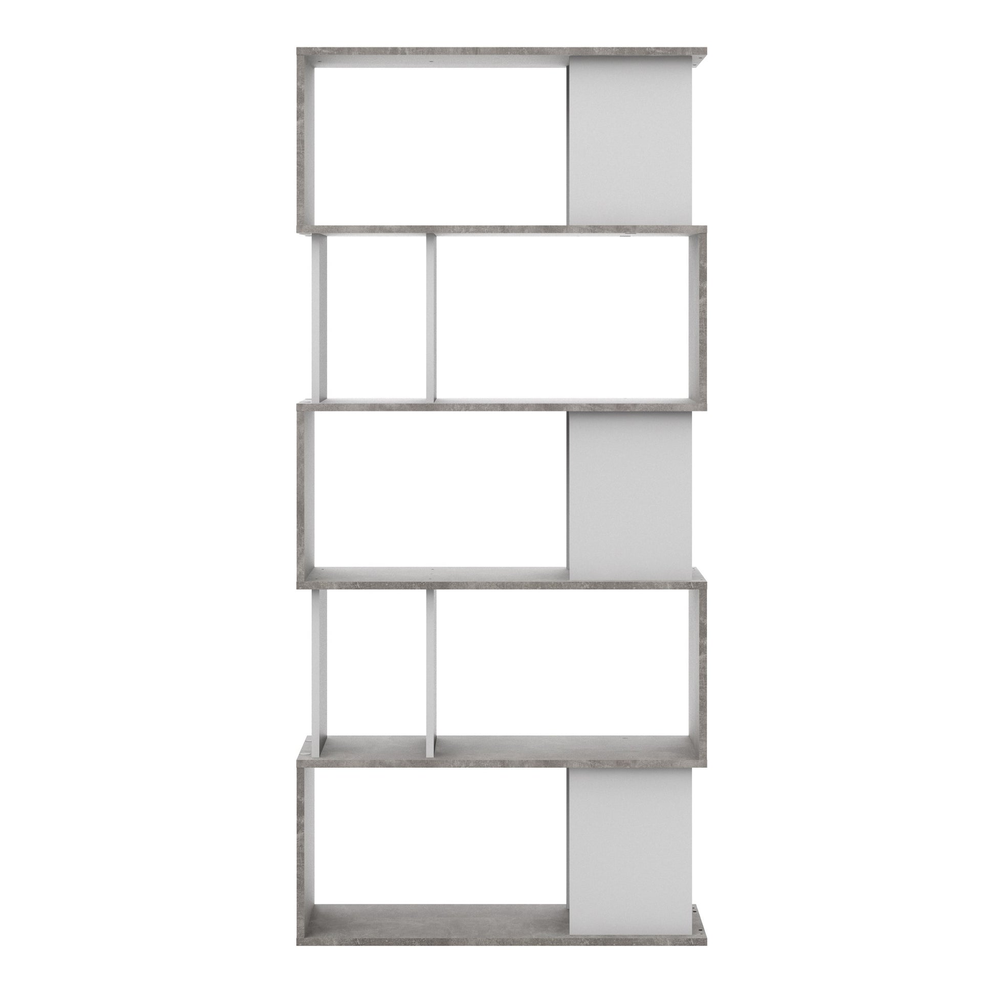 Maze Open Bookcase 4 Shelves in Concrete and White