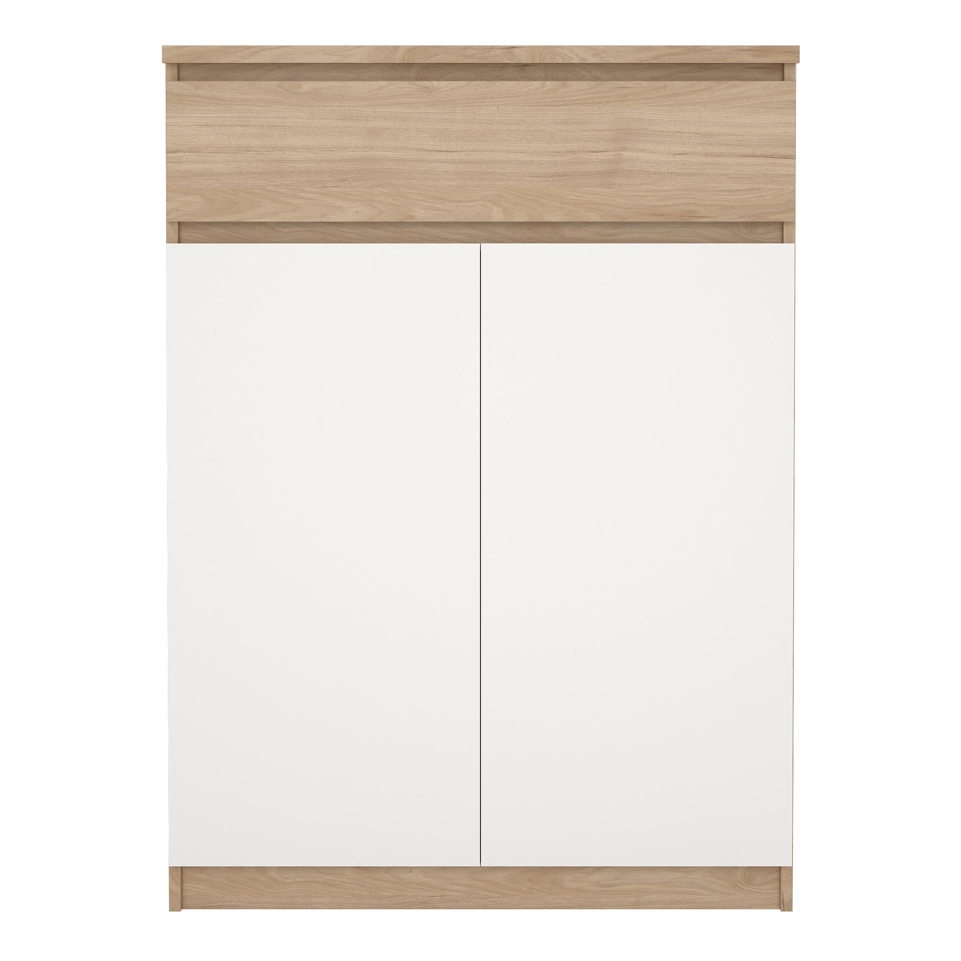 Naia Shoe Cabinet with 2 Doors 1 Drawer in Jackson Hickory Oak and White