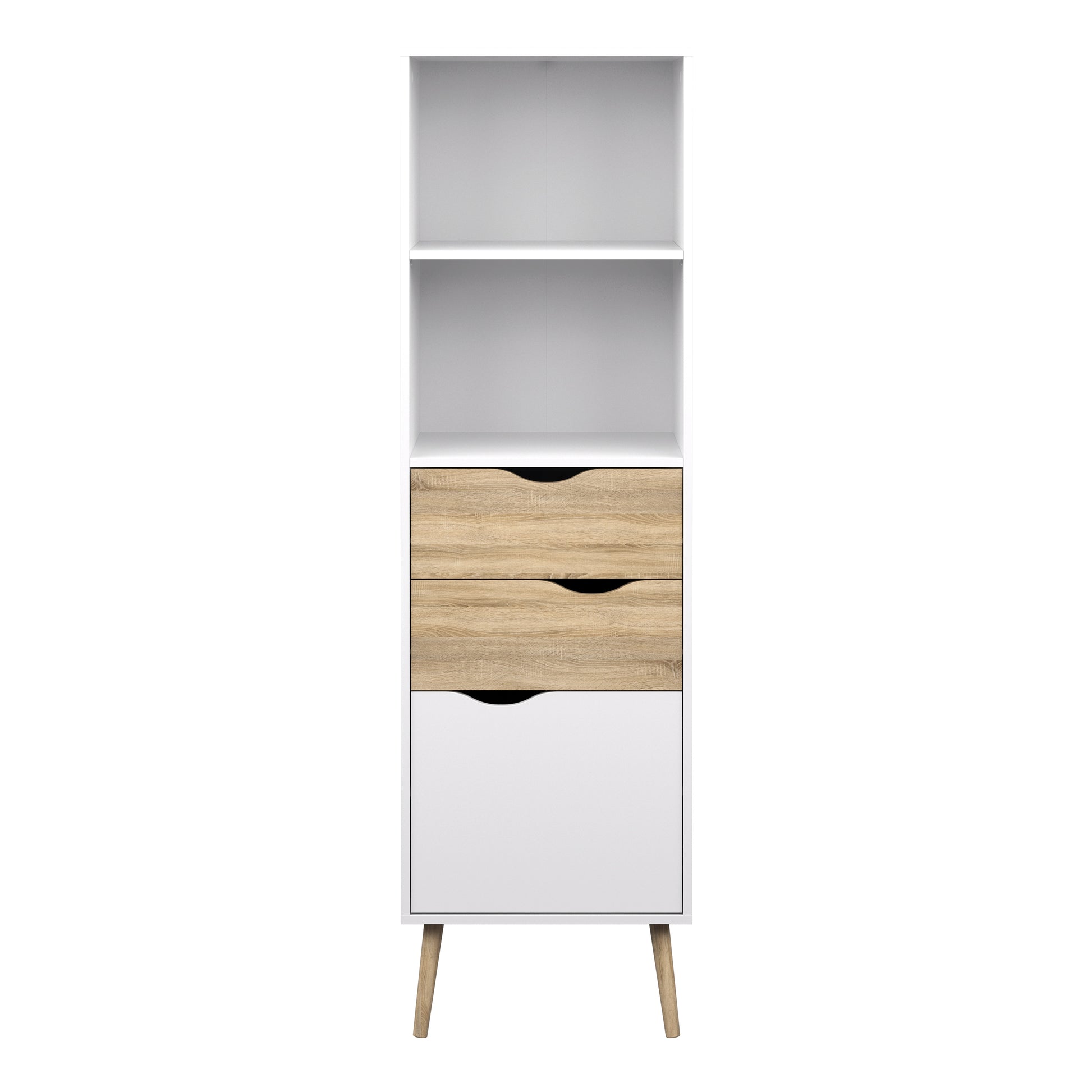 Oslo Bookcase 2 Drawers 1 Door in White and Oak