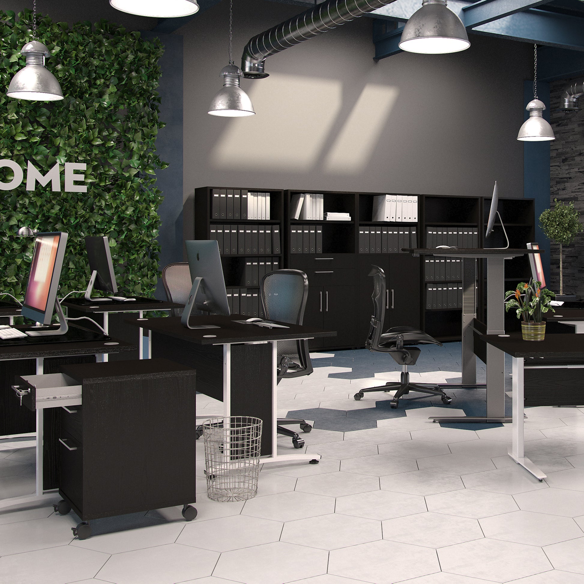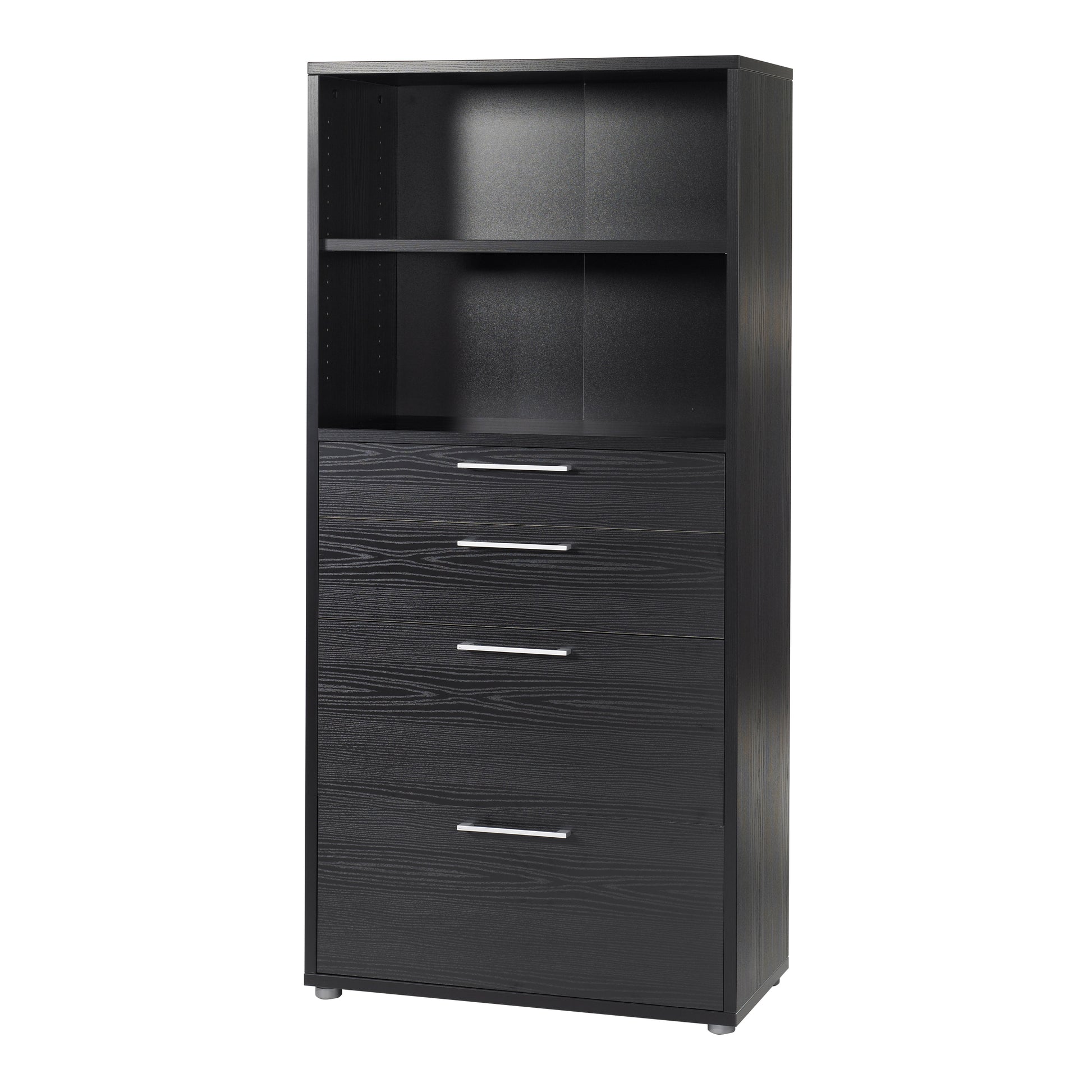 Prima Bookcase 1 Shelf With 2 Drawers 2 File Drawers In Black Woodgrain