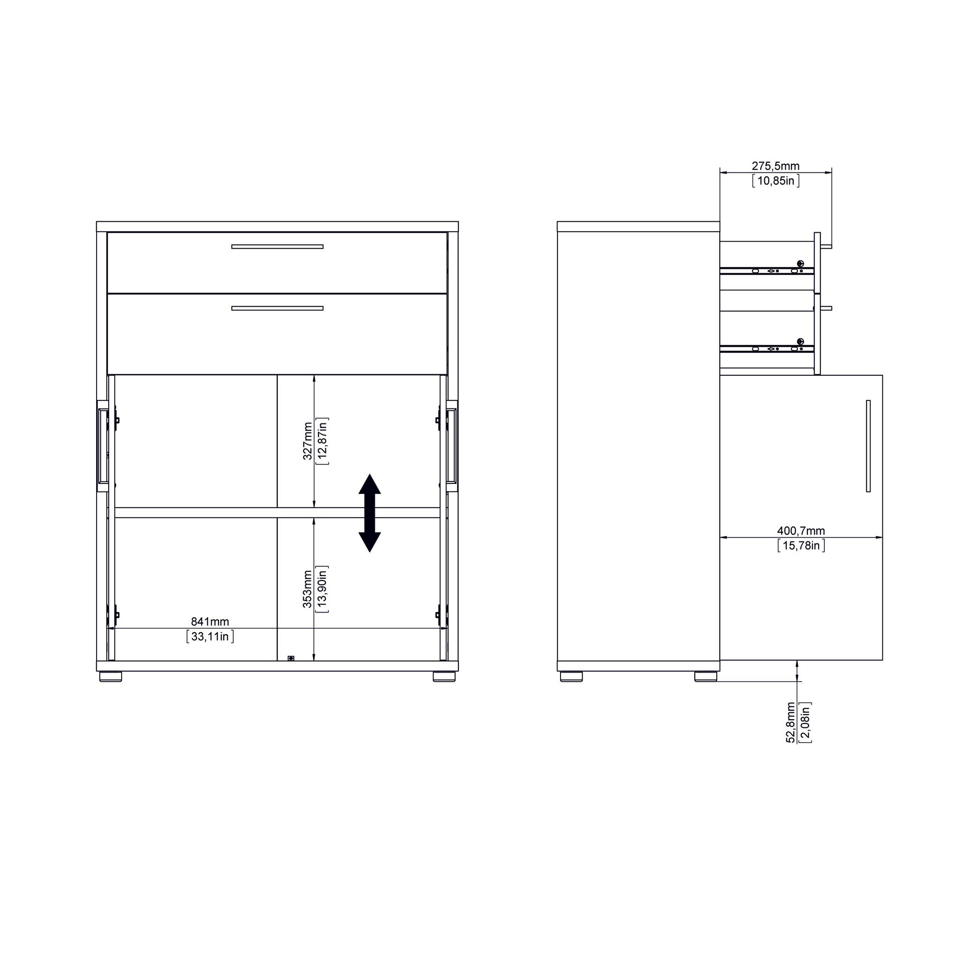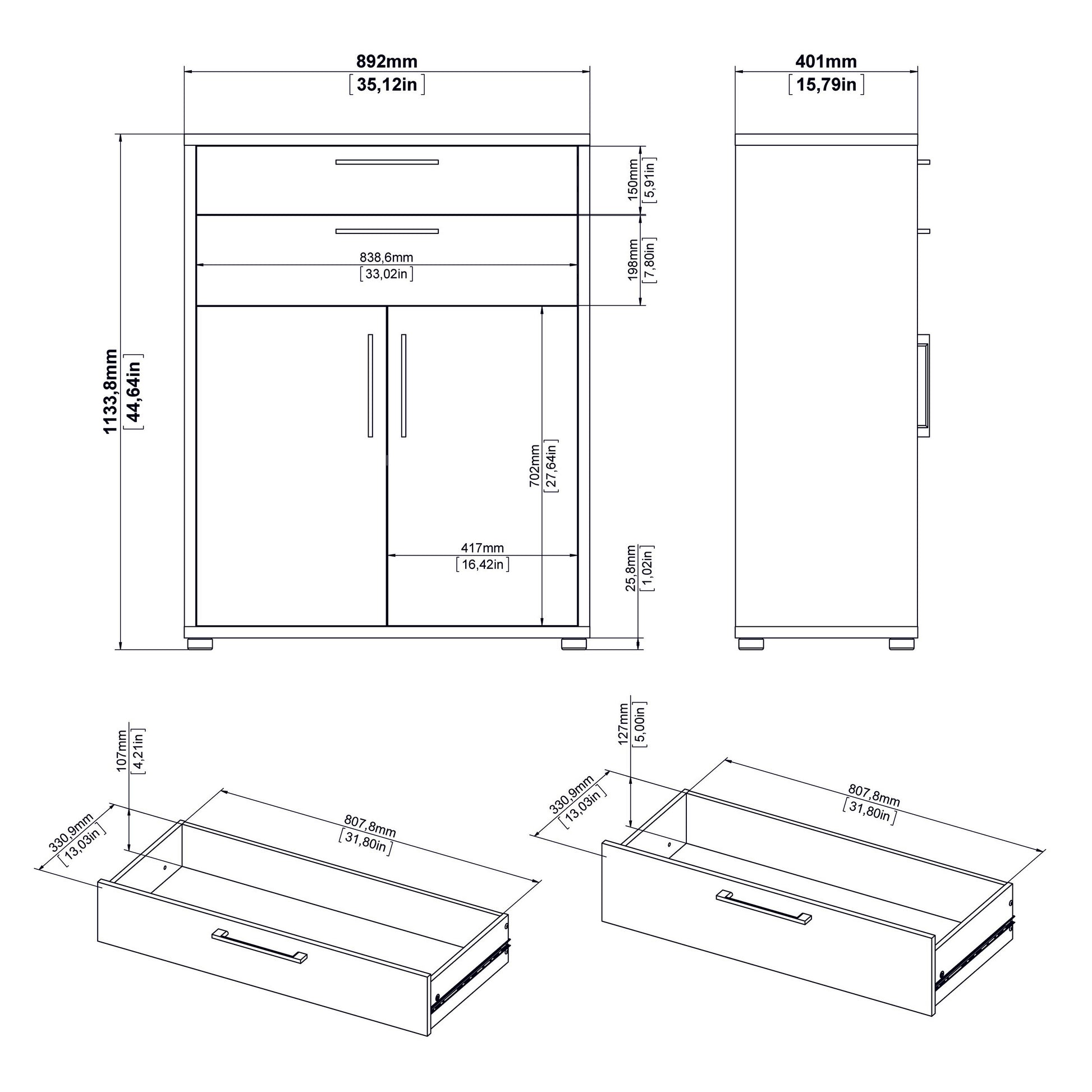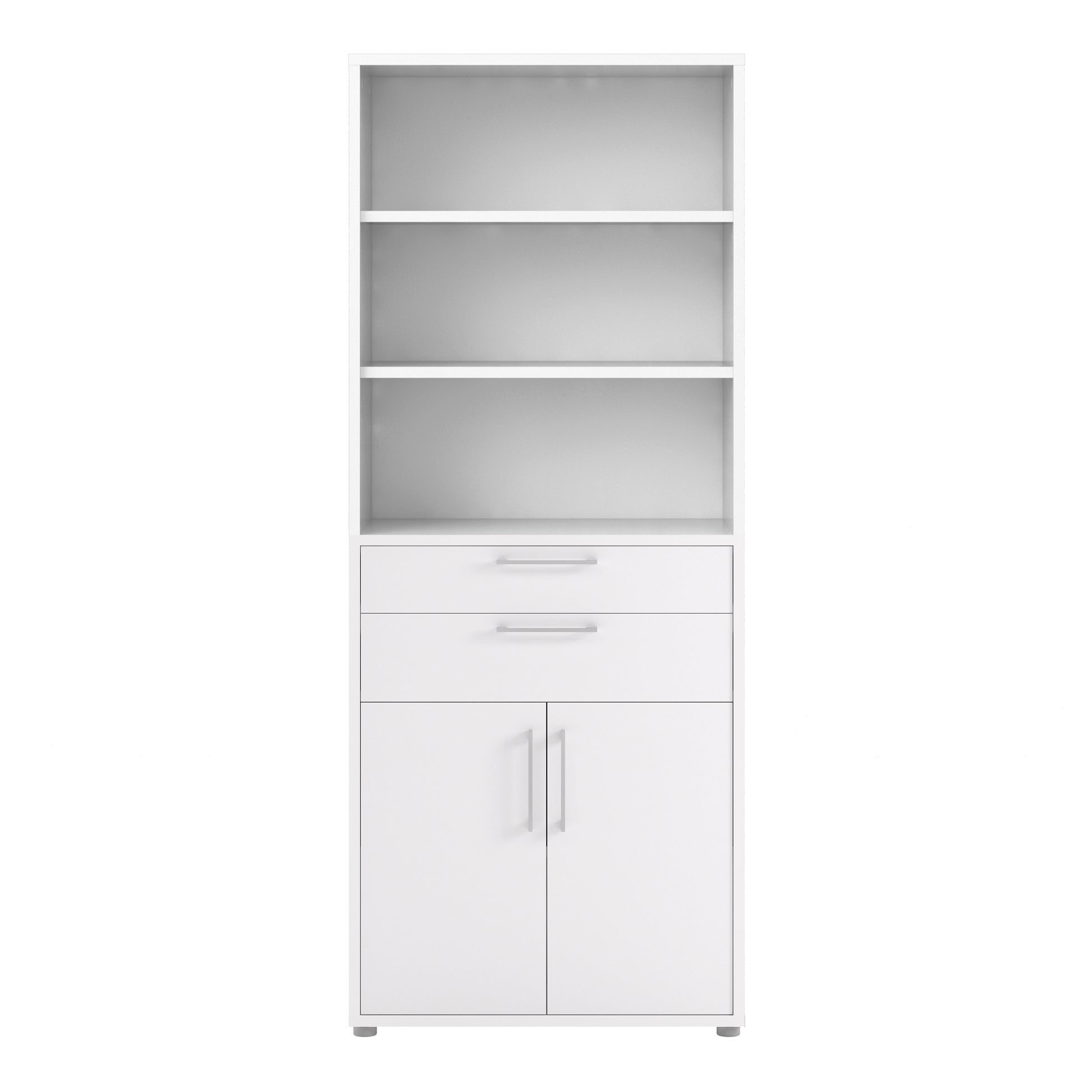 Prima Bookcase 3 Shelves with 2 Drawers 2 Doors In White