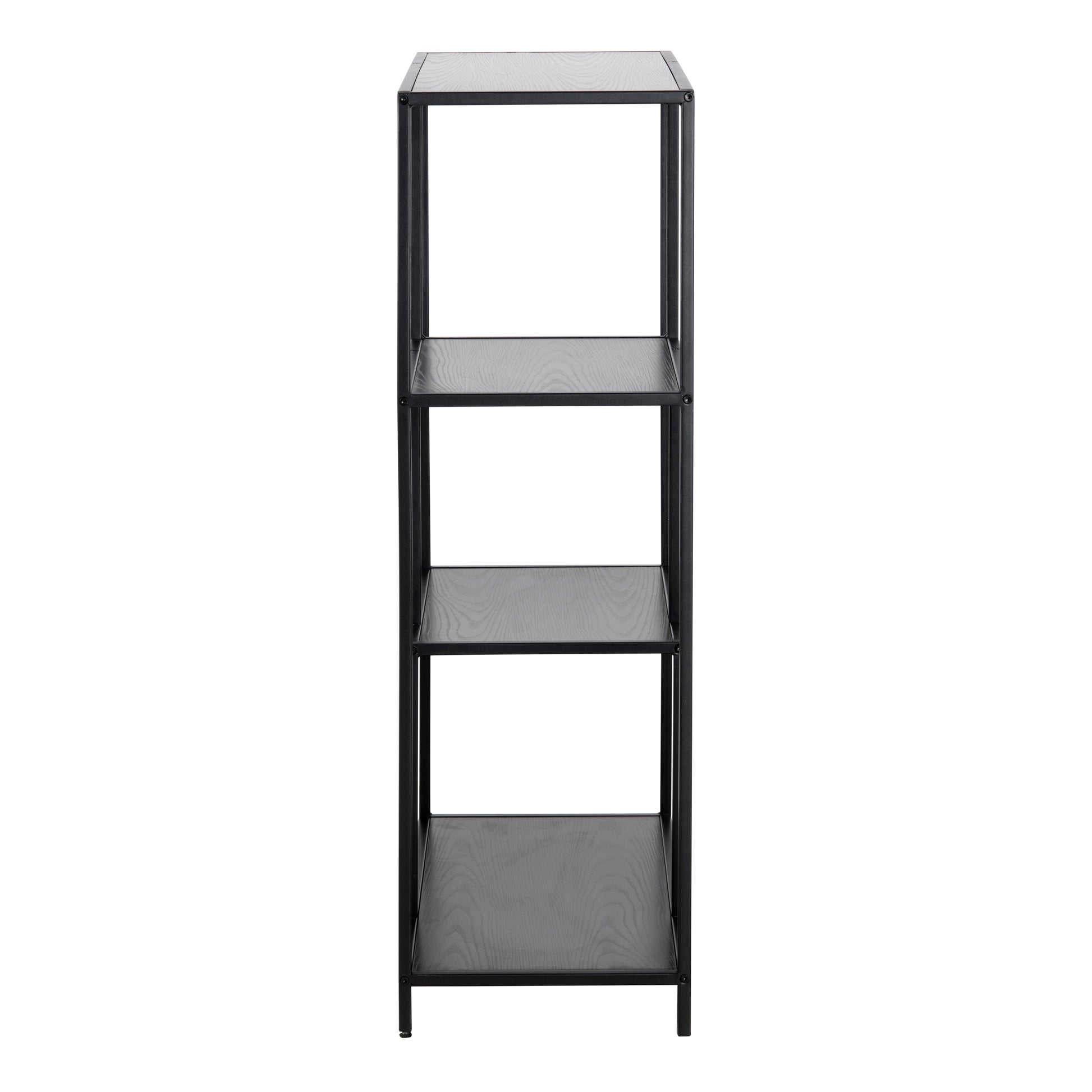 Seaford Black Metal Asymmetrical Bookcase with 3 Black Shelves