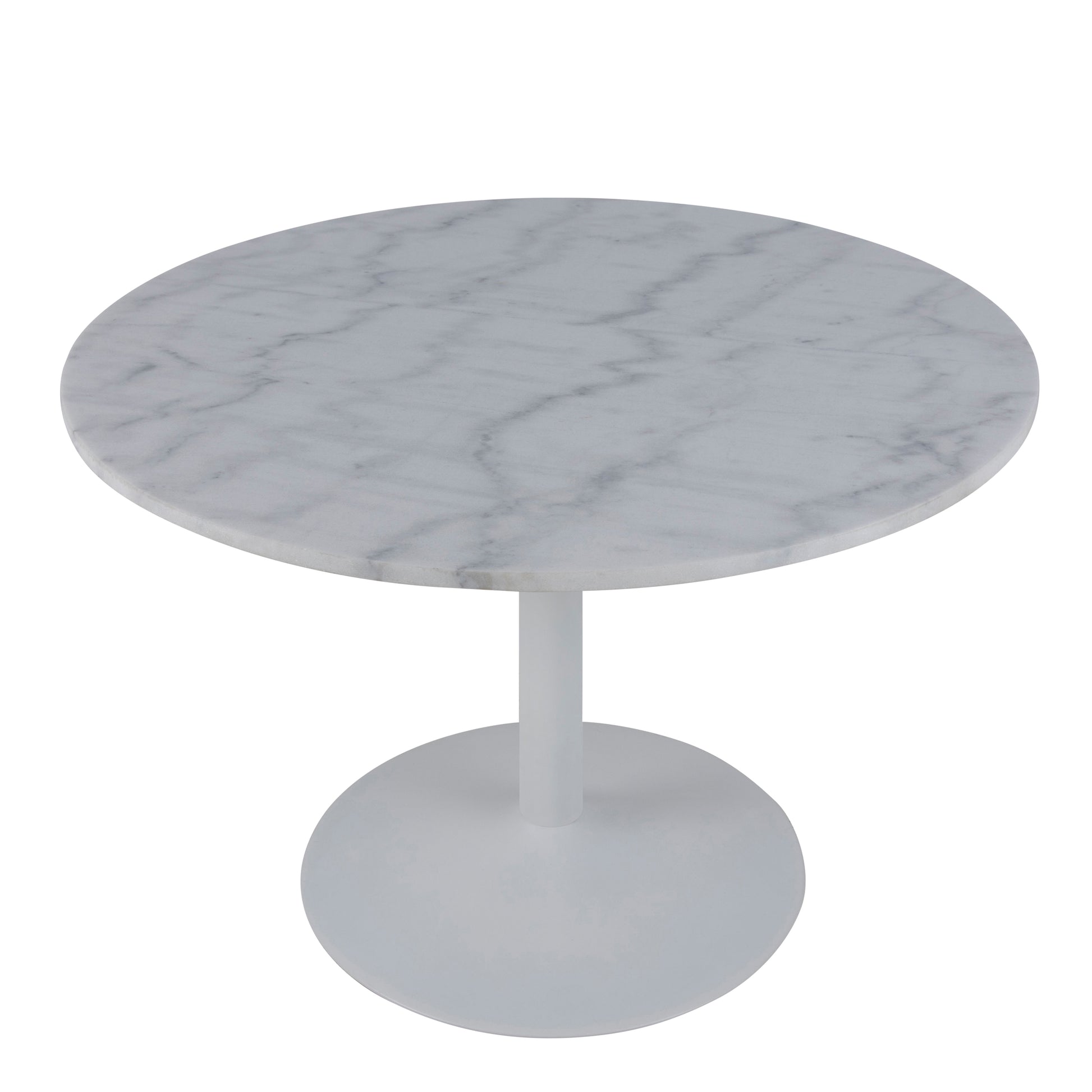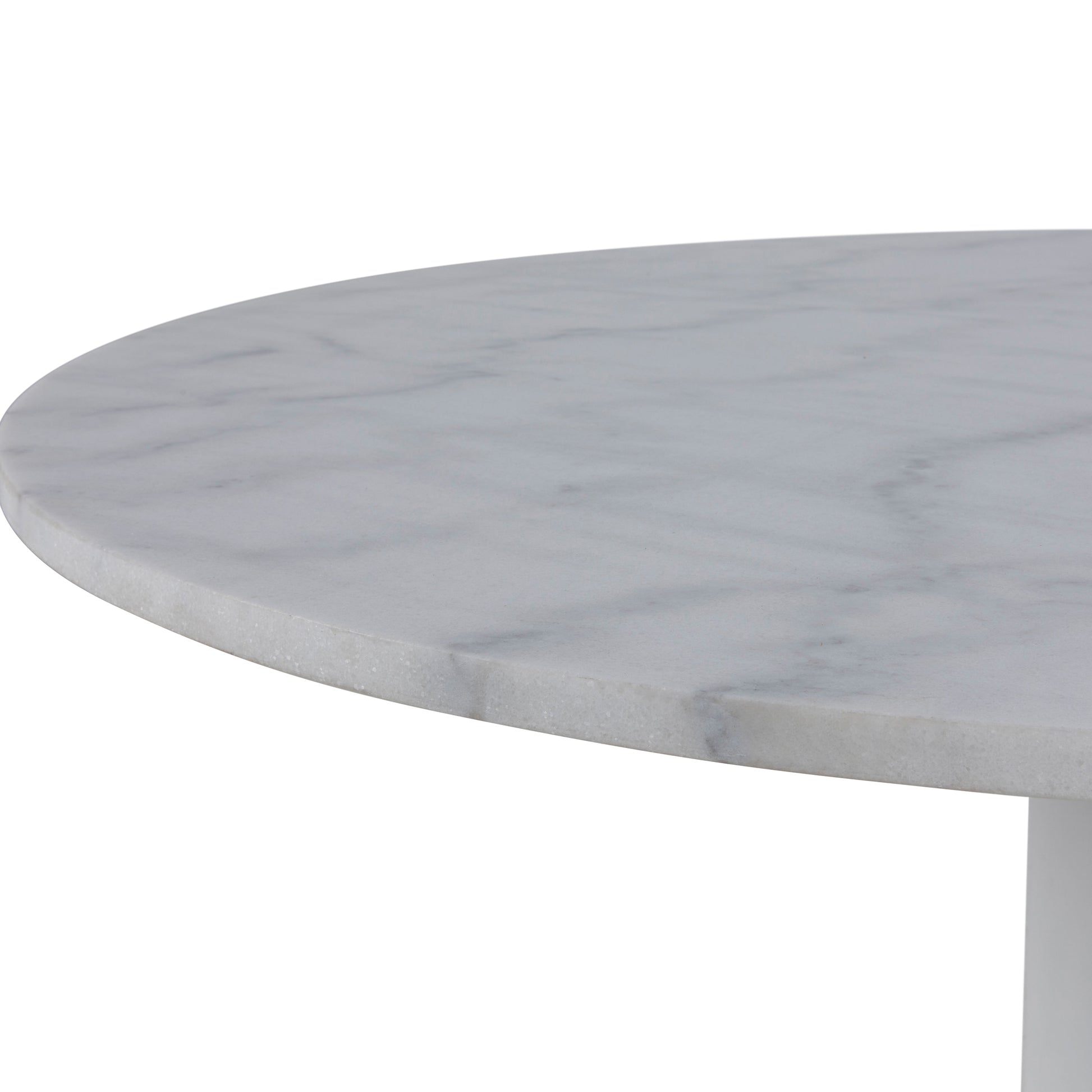 Tarifa Round Dining Table with White Polished Marble Top and White Base