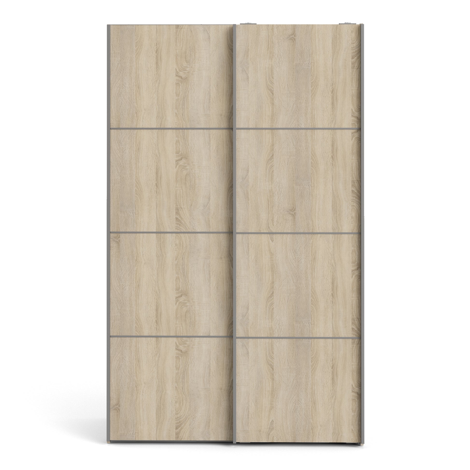 Verona Sliding Wardrobe 120cm in White with Oak Doors with 5 Shelves