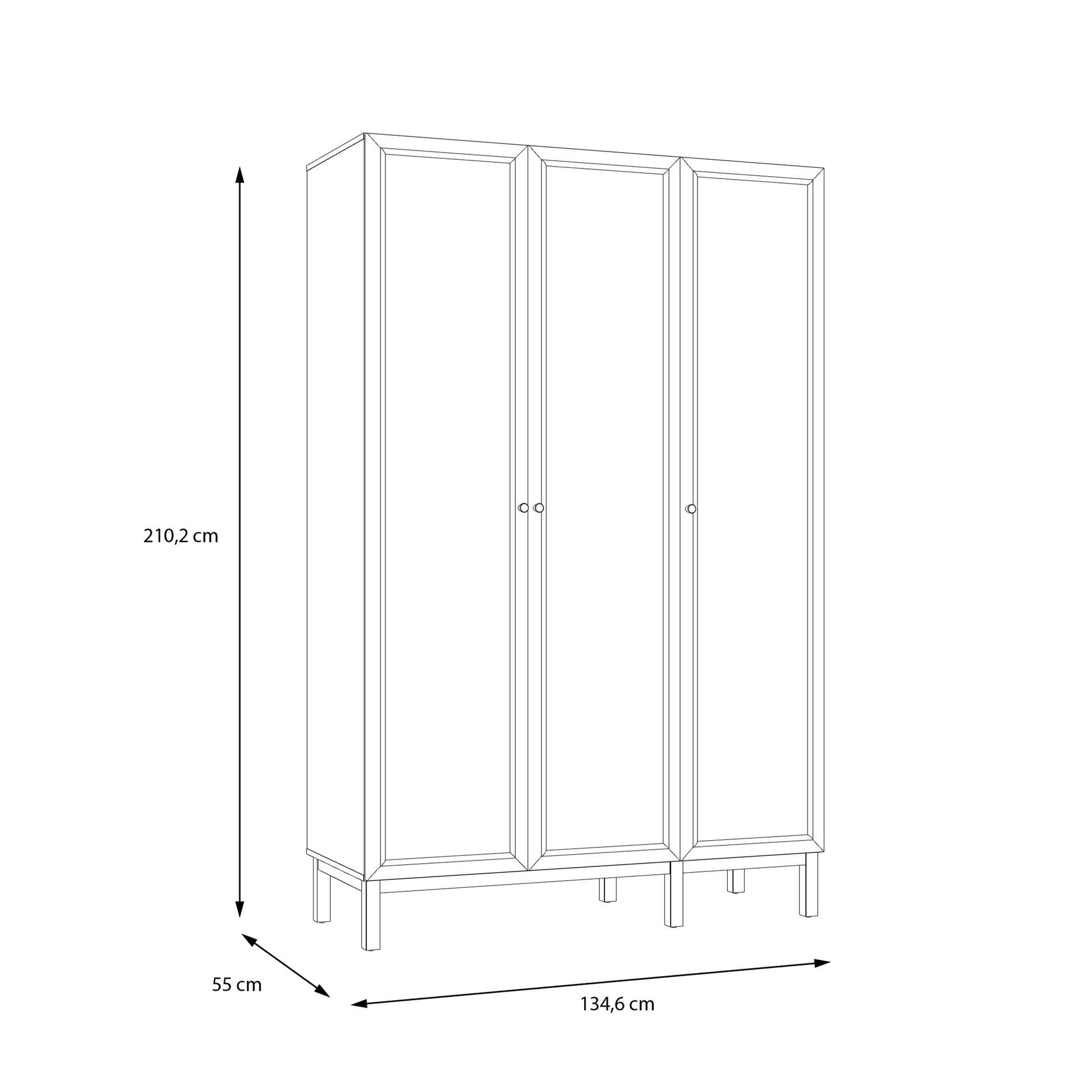 Wensley 3 Door Wardrobe in Light Grey and Oak